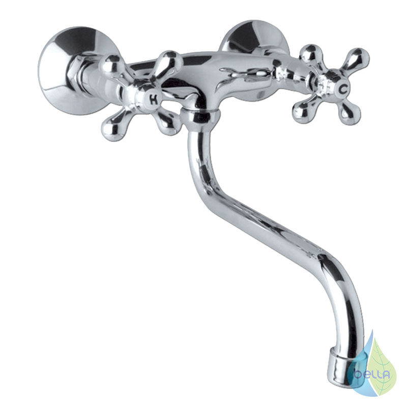 Nástenná drezová / umývadlová batéria v retro prevedení s keramickými vrškami.